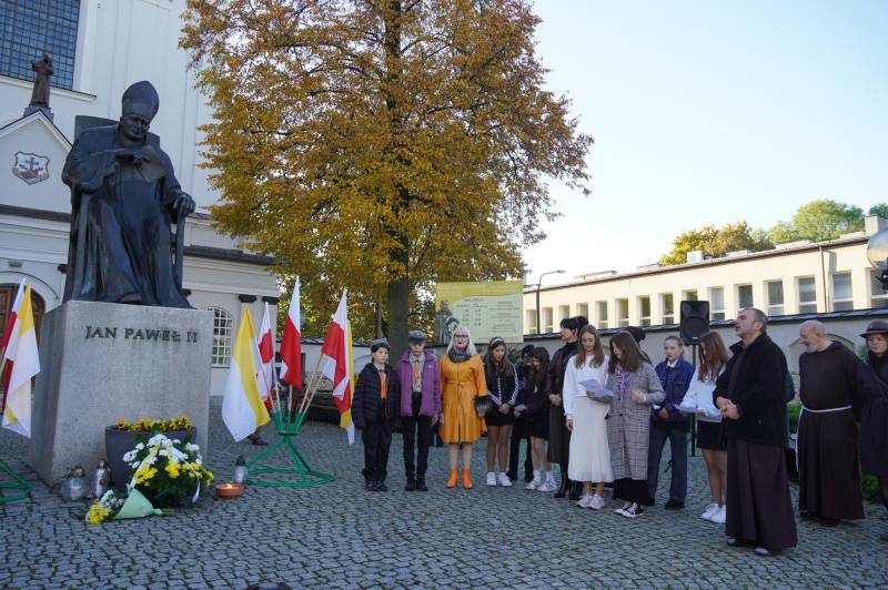 W Dniu Papieskim przy pomniku św. Jana Pawła II kwiaty złożyli dziś: przedstawiciele Urzędu Miasta: w imieniu prezydenta Michała Litwiniuka - wiceprezydent Justyna Gorczyca, Naczelnik Gabinetu Prezydenta Wojciech Sosnowski, Naczelnik Wydziału Edukacji i Spraw Społecznych Stanisław Romanowski oraz Beata Demianiuk, Naczelnik Wydziału Kultury, Sportu i Współpracy z Organizacjami Pozarządowymi, harcerze oraz uczniowie Szkoły Podstawowej nr 9, którzy wraz z pozostałymi uczestnikami obchodów zaśpiewali ukochaną pieśń Jana Pawła II - "Barkę".