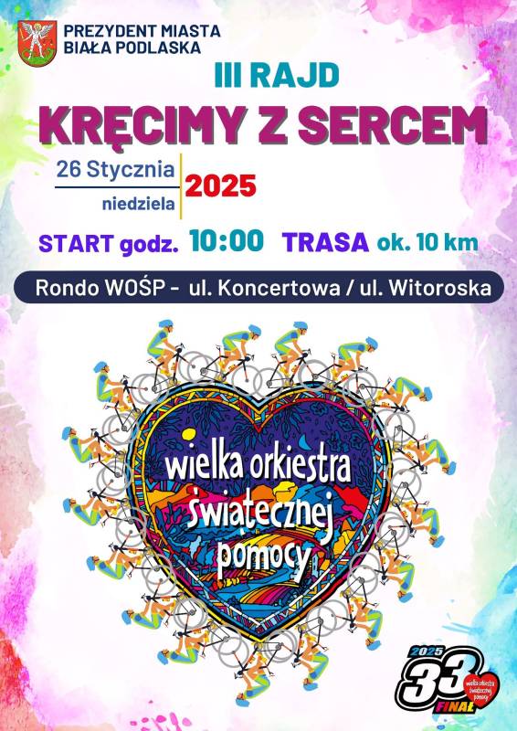 26.01.2025 r. jako trzykrotni Mistrzowie Rowerowej Stolicy Polski wykręćmy rowerami kilometry dla WOŚP. Już w tę niedzielę o godzinie 10:00 spotkajmy się przy rondzie WOŚP i wyruszmy rowerami w ok. 10 km trasę ścieżkami rowerowymi po naszym pięknym mieście. Wszystkich fanów dwóch kółek do wspólnej zabawy zaprasza prezydent miasta Michał Litwiniuk. SIEMA!