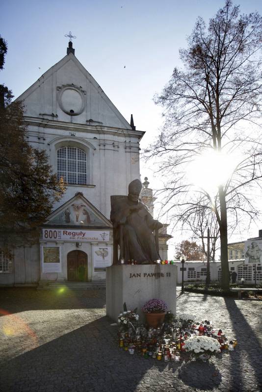 Wzniesiony jako klasztorny w latach 1773-87 staraniem Michała Radziwiłła i jego żony Katarzyny z Sobieskich, siostry Jana III Sobieskiego, zapewne wg projektu Augustyna Locciego Młodszego. Uposażony przez Annę z Sanguszków. W latach 1875-1915 cerkiew prawosławna następnie kościół garnizonowy. Po 1919 świątynia parafii wojskowej pw. Krzyża Świętego. W latach 1940-44 skład amunicji. Obecnie klasztorny Braci Mniejszych Kapucynów. We wnętrzu malowidła na sklepieniach z 4 ćw. XVII w.