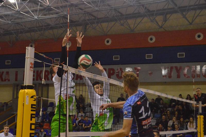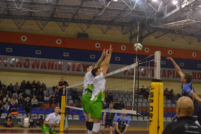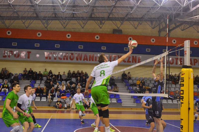 W pierwszej odsłonie spotkania od pierwszych minut narzucili swój styl gry. W połowie seta uzyskali kilkupunktową przewagę, której już nie oddali do końca wygrywając 25:17. Drugi set, jak się później okazało był najbardziej zacięty. Gospodarze co prawda uzyskali 3 punkty przewagi i na tablicy wyświetlił się wynik 21:18, ale przyjezdni nie dali za wygraną i doprowadzili najpierw do remisu, a następnie wyszli na prowadzenie 22:21. Z nerwowa końcówką jednak lepiej poradzili sobie akademicy z Białej Podlaskiej i wygrali drugą partię 25:23.