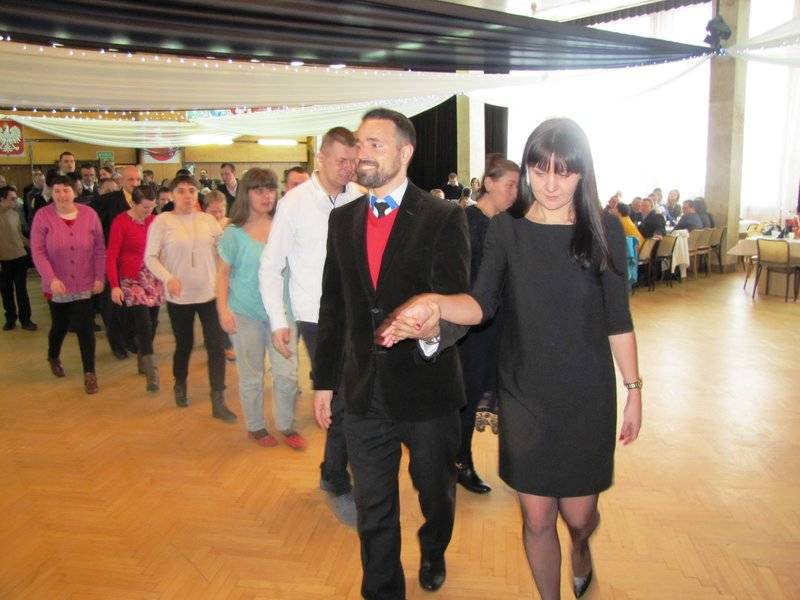 Na sali pojawili się wolontariusze z bialskiego Centrum Wolontariatu prowadzonego przez Caritas diecezjalną. Towarzyszyli niepełnosprawnym w zabawach tanecznych i pomagali roznosić obiad przygotowany przez bialskie Centrum Integracji Społecznej.