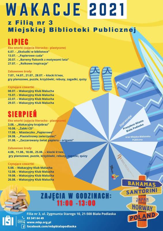 Wakacje 2021 z Filią nr 3 Miejskiej Biblioteki Publicznej