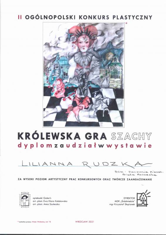 Tym razem to II Ogólnopolski Konkursu Plastyczny „Królewska Gra Szachy", zorganizowany przez Młodzieżowy Dom Kultury „Śródmieście" we Wrocławiu!!!