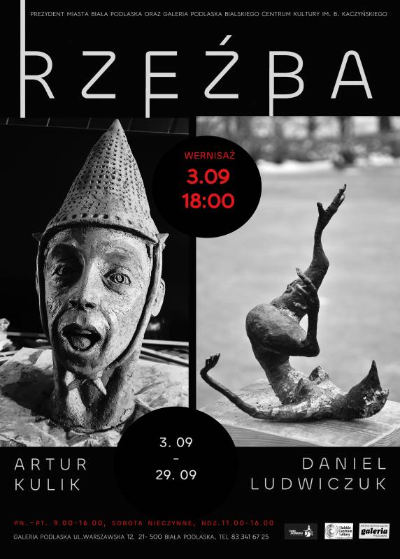 Wernisaż wystawy pt. "Rzeźba" w dniu 3 września o godz. 18.00 w Galerii Podlaskiej. Wystawę można będzie oglądać do 29 września.