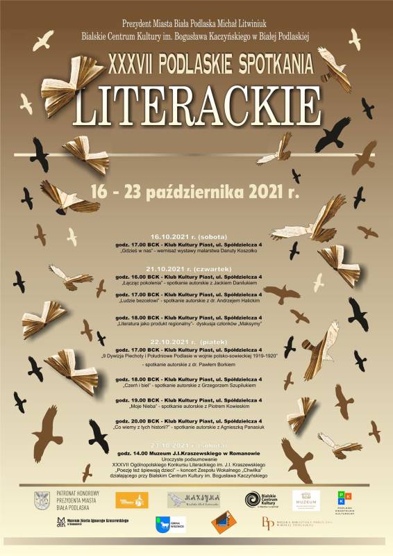 Prezydent Miasta Biała Podlaska Michał Litwiniuk, który objął to wydarzenie Honorowym Patronatem, Bialskie Centrum Kultury oraz Bialski Klub Literacki Maksyma.