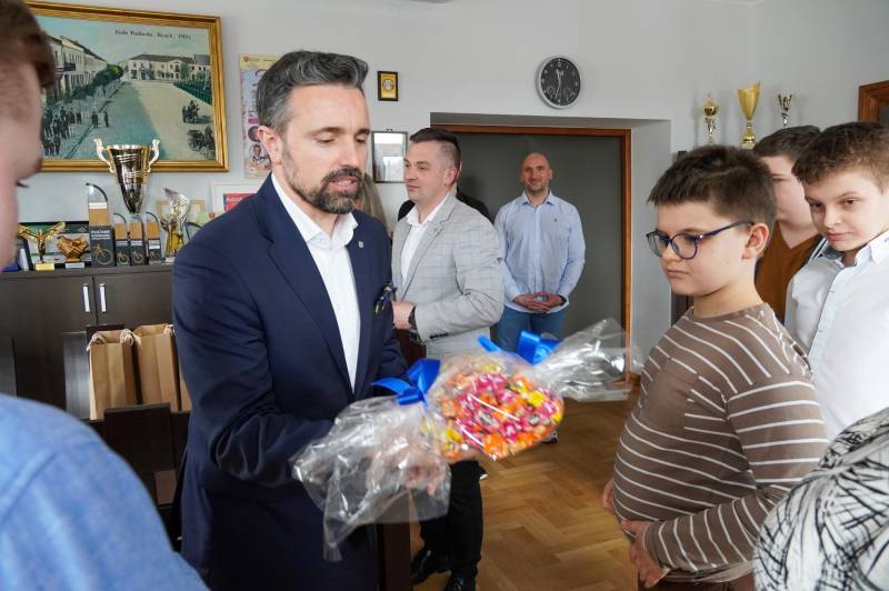 Nasi goście zostali obdarowani przez prezydenta oraz Naczelnika Gabinetu Prezydenta Wojciecha Sosnowskiego pamiątkowymi koszulkami Rowerowej Stolicy Polski oraz miodem z ekologicznej, miejskiej pasieki znajdującej się w Małpim Gaju.