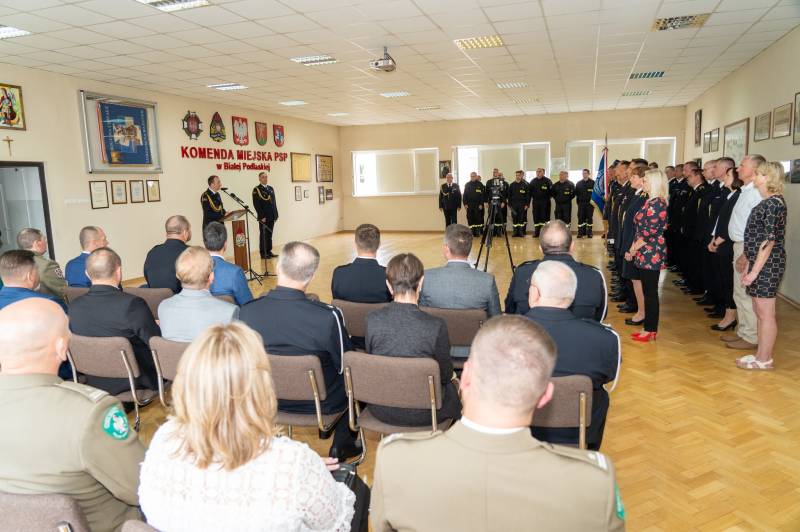 Podczas dzisiejszej uroczystości w siedzibie Państwowej Straży Pożarnej zaprzysiężony został komendant st. bryg. mgr inż. Szymon Semeniuk.