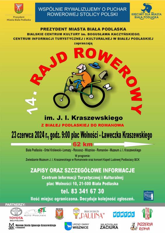 To już ostatni moment, aby zapisać się na doroczny 14. Rajd Rowerowym szlakiem J. I. Kraszewskiego z Białej Podlaskiej do Romanowa. Wydarzenie odbywa się w ramach rywalizacji o puchar Rowerowej Stolicy Polski.