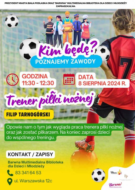 Tym razem gościem będzie Pan Filip Tarnogórski z Akademia Piłkarska Podlasie Biała Podlaska, który opowie o pracy trenera piłki nożnej. Dowiemy się również jak zostać piłkarzem. A na koniec nasz gość zaprosi dzieci do wspólnego treningu.