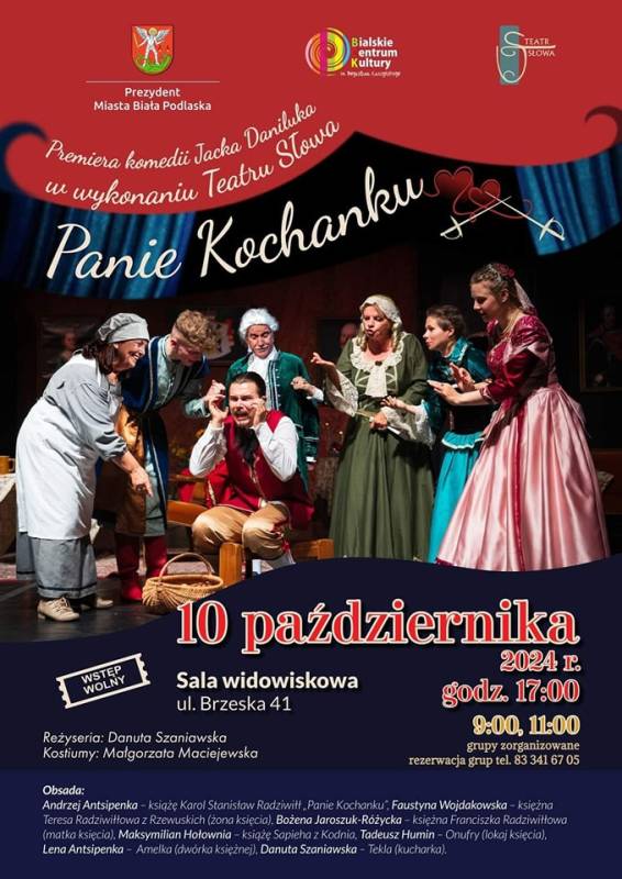 Już dziś zapraszamy na premierę spektaklu pt.: "Panie Kochanku" w wykonaniu Teatru Słowa działającego przy Bialskim Centrum Kultury im. Bogusława Kaczyńskiego.