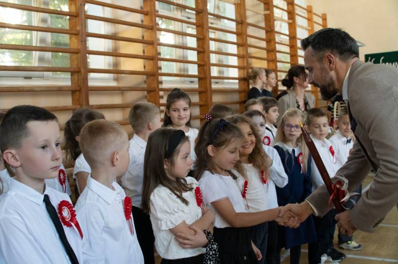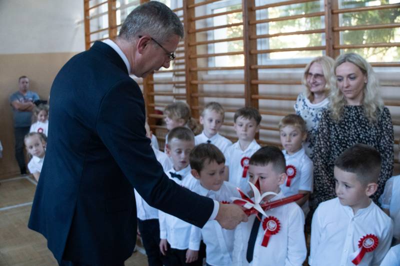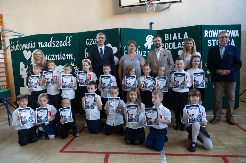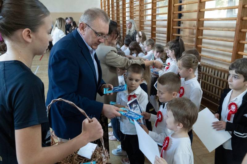 Najlepsze życzenia najmłodszym uczniom złożył prezydent Michał Litwiniuk podkreślając jak ważna jest także rola rodziców i nauczycieli zaangażowanych w rozwój umiejętności i talentów dzieci. Ich próbkę wysłuchali wraz z dyrektorem Marcinem Szwedem, wicedyrektorami Martą Bechtą i Grzegorzem Szycem oraz uczniami starszych klas. Były recytacje oraz śpiew, które zebrały ogromne brawa.