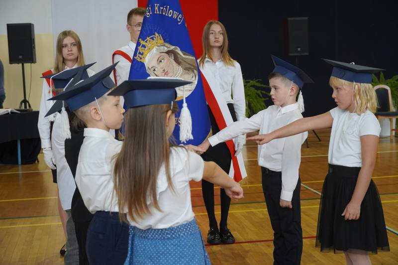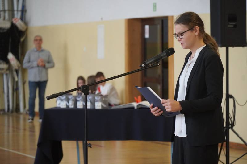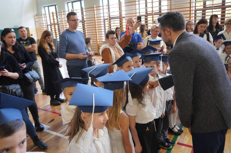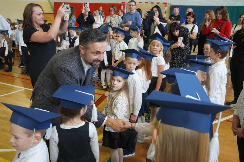Uroczystego pasowania dokonał prezydent miasta Michał Litwiniuk życząc pierwszoklasistom wielu przygód na nowej, szkolnej drodze a rodzicom - dobrej i owocnej współpracy z nauczycielami oraz wychowawcami.