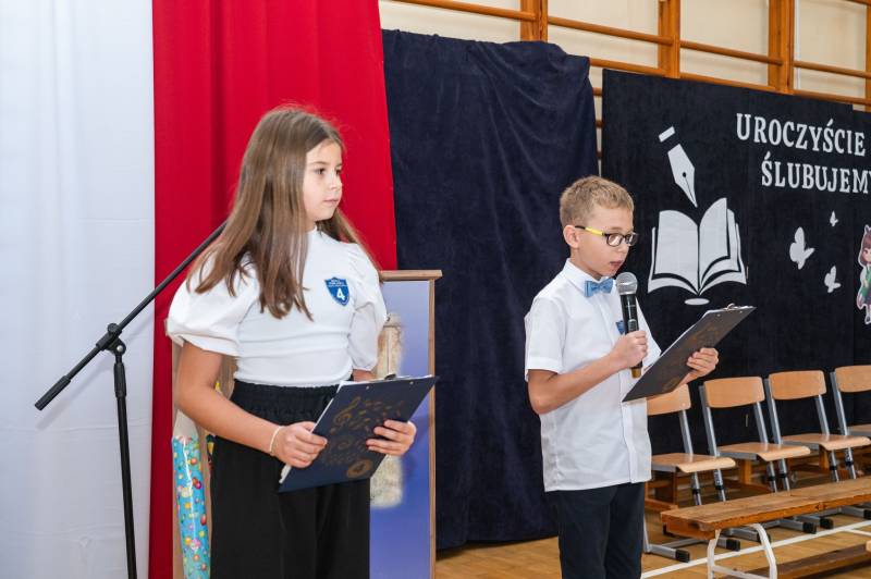 Uczniowie Szkoły Podstawowej nr 4 złożyli dziś ślubowanie. Tym samym rozpoczęła się ich wspaniała przygoda w murach szkoły.