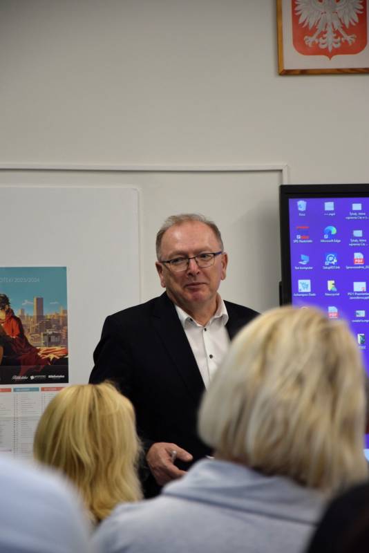 Naczelnik Wydziału Edukacji i Spraw Społecznych dr Stanisław Romanowski omówił kierunki działania w ramach Bialskiego Systemu Doradztwa Zawodowego, na rok szkolny 2024/2025.