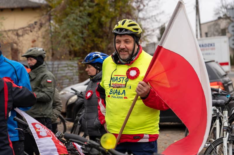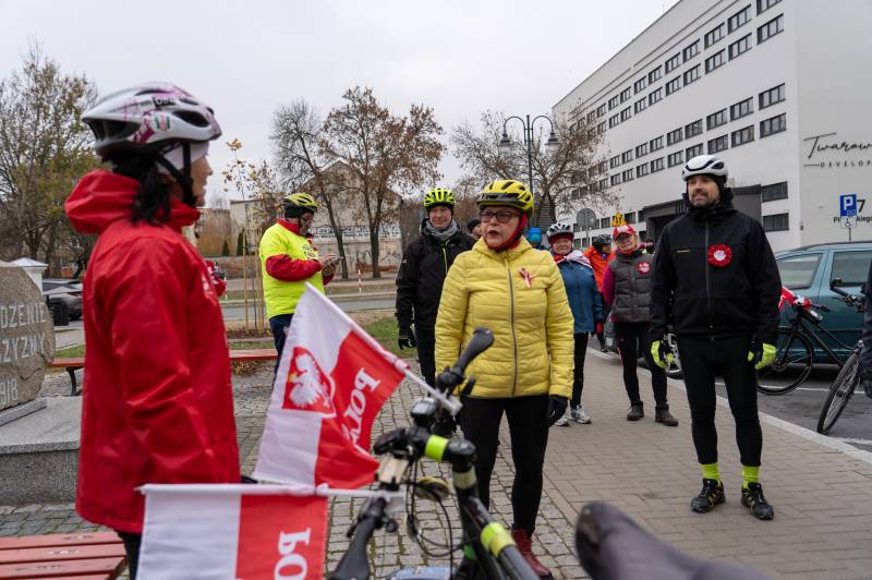 Dziś z samego rana 50 rowerzystów i rowerzystek wyruszyło w rajdzie "Szlakiem Niepodległości".