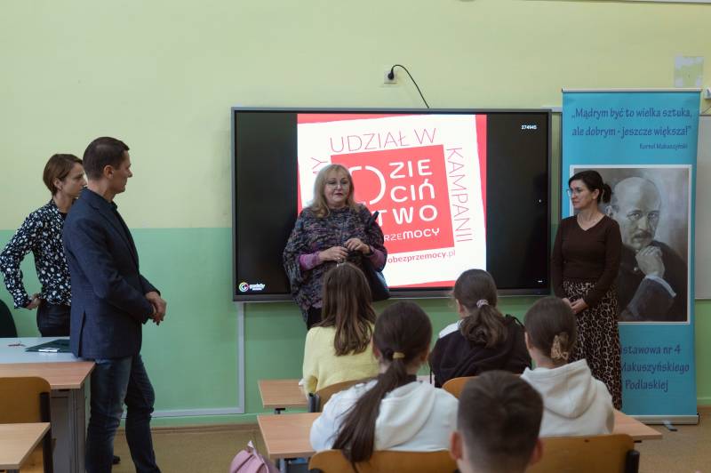 W Szkole Podstawowej nr 4 im. Kornela Makuszyńskiego w Białej Podlaskiej odbyły się kolejne zajęcia w ramach ogólnopolskiej kampanii Dzieciństwo bez przemocy. Kampania ma celu przeciwdziałanie przemocy wobec dzieci w całej Polsce.