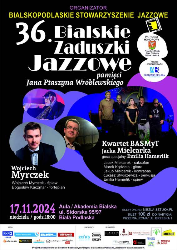 W najbliższą niedzielę 17 listopada o godz. 18:00 w auli Akademii Bialskiej ul. Sidorska 95/97 odbędą się 36. Bialskie Zaduszki Jazzowe, które Honorowym Patronatem objął Prezydent Michał Litwiniuk.