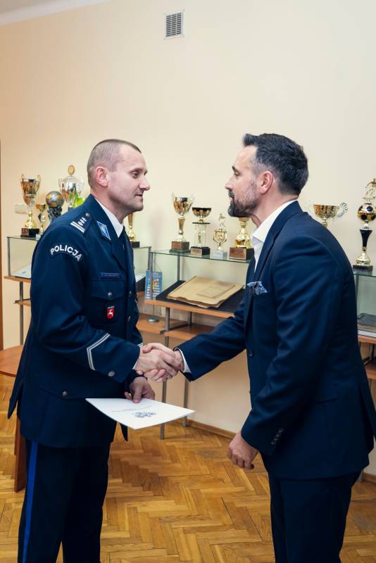 Prezydent Michał Litwiniuk w obecności samorządowców powiatu bialskiego, funkcjonariuszy oraz komendanta Andrzeja Antoniewskiego uczestniczył w przekazaniu 6 samochodów służbowych dla Komendy Miejskiej Policji. Przekazane przez miasta i gminy pieniądze pozwoliły także poprawić jakość wyposażenia biurowego. Miejski samorząd co roku przeznacza środki na Wojewódzki Fundusz Wsparcia Policji, w tym roku było to 28,5 tys. zł