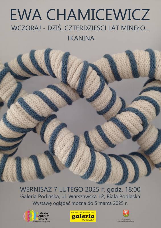 Wczoraj – dziś. Czterdzieści lat minęło…” - to tytuł nadchodzącego wernisażu makramy autorstwa Ewy Chamicewicz, który odbędzie się 7 lutego 2025 r. (piątek) o godz. 18:00 w Galerii Podlaskiej przy ul. Warszawskiej 12 w Białej Podlaskiej.