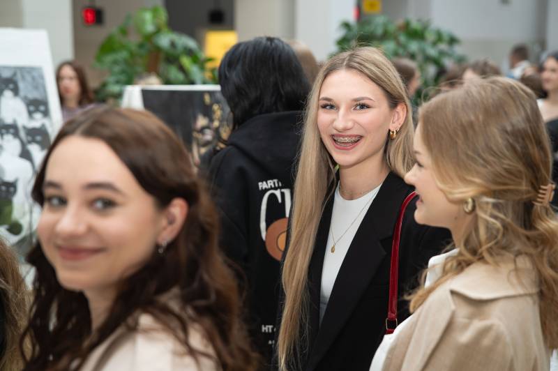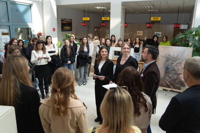Obrazy utalentowanych uczennic I Liceum Ogólnokształcącego im. J.I. Kraszewskiego, II Liceum Ogólnokształcącego im. E. Plater i IV Liceum Ogólnokształcącego im. S. Staszica zdobią salę obsługi Urzędu Miasta.