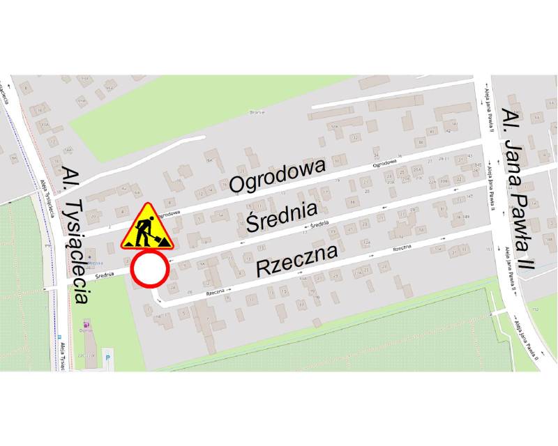 Na skrzyżowaniu ulic Średniej i Rzecznej, w celu usunięcia awarii kanalizacji deszczowej, będą prowadzone roboty drogowe w ramach prac gwarancyjnych. W związku z tym skrzyżowanie zostanie wyłączone z ruchu pojazdów. Dojazd do posesji zlokalizowanych na ulicy Rzecznej będzie odbywał się od strony Al. Jana Pawła II.