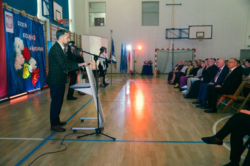 Życzenia nauczycielom i uczniom podczas uroczystej akademii złożyli Prezydent Miasta Biała Podlaska Michał Litwiniuk oraz dr Stanisław Romanowski, naczelnik Wydziału Edukacji i Spraw Społecznych Urzędu Miasta.