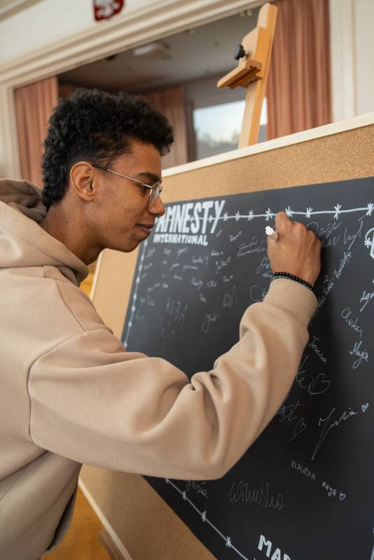 Uczniowie, nauczyciele i dyrekcja ZSZ nr 1 w Białej Podlaskiej zorganizowali akcję pisania listów Amnesty International. W imieniu prezydenta Michała Litwiniuka do inicjatywy dołączyli zastępca prezydenta Justyna Gorczyca, rzecznik prasowa Gabriela Kuc-Stefaniuk oraz dr Stanisław Romanowski, naczelnik Wydziału Edukacji i Spraw Społecznych.