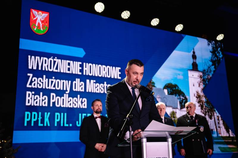 • Tytuł „Zasłużony dla Miasta Biała Podlaska”: Wspólnie z przewodniczącym rady miasta Robertem Woźniakiem wręczyliśmy to prestiżowe wyróżnienie panu ppłk. pil. Jerzemu Ryszardowi Trudzikowi. Wniosek o nadanie tytułu złożył mjr Mirosław Joński, prezes Stowarzyszenia Seniorów Lotnictwa Wojskowego RP Oddział Biała Podlaska. Dziękujemy za wzruszające słowa o Zasłużonym, które wygłosił płk pil. i radny Franciszek Ostrowski.