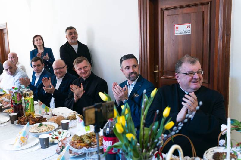 O świąteczną oprawę kulinarną zadbali pracownicy Centrum Integracji Społecznej, przygotowując tradycyjny poczęstunek. Zgodnie z wieloletnią tradycją bialskiego samorządu, każdy uczestnik otrzymał okolicznościową paczkę świąteczną. Wyjątkowy nastrój dopełniła krótka inscenizacja o tematyce duchowości Wielkiej Nocy, przygotowana przez wolontariuszy z Centrum Wolontariatu Caritas pod kierunkiem Małgorzaty Strzelec. Wspólny posiłek i czas spędzony razem pozwoliły poczuć wspólnotowy charakter nadchodzącego czasu.