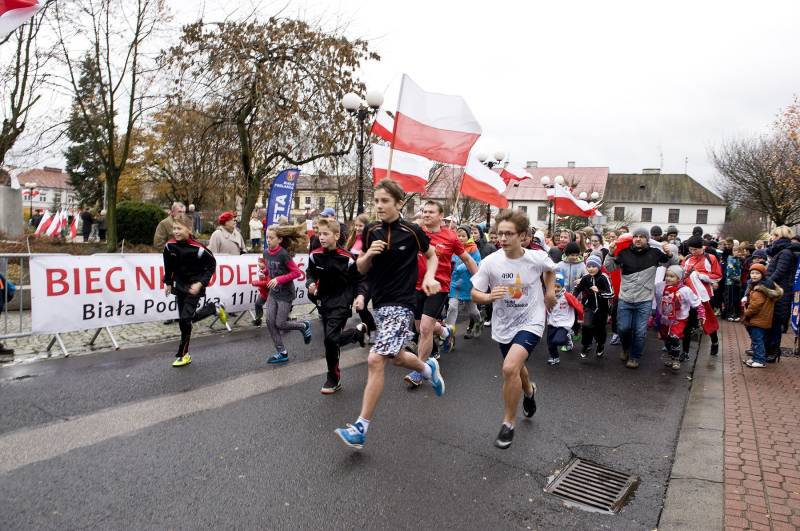 Mimo niekorzystnych warunków atmosferycznych w środę odbył się także symboliczny bieg niepodległości, prowadzący uliczkami w centrum miasta.