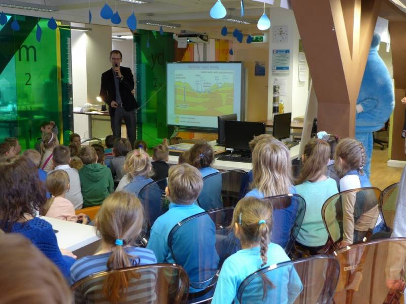 Podczas warsztatów dzieci wysłuchały prelekcji Wojciecha Bystrzyńskiego, pracownika Bialskich Wodociągów i Kanalizacji WOD-KAN, pt. Bialska woda, dobra woda, wzbogaconej o doświadczenie obrazujące proces filtrowania wody. Następnie przedstawiona została krótka prezentacja o wodzie, jej właściwościach i znaczeniu dla człowieka.