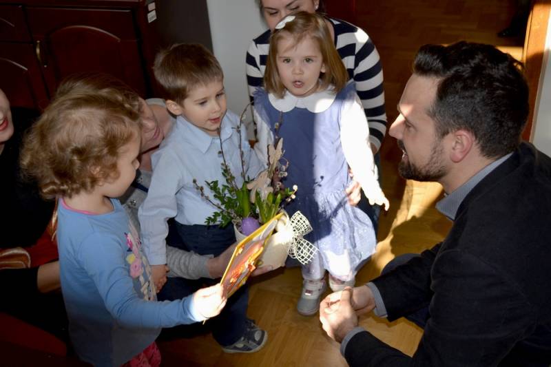 Tuż przed świętami Wielkiejnocy w urzędzie miasta pojawiły się dzieci z miejskiego żłobka Skarbiec Skrzata, w towarzystwie dyrektor Anety Stanisławek. Najmłodsi przygotowali prezenty dla prezydenta Dariusza Stefaniuka i jego zastępcy Michała Litwiniuka. Nie obyło się także bez pięknych życzeń w postaci wierszyków, które dzieci wyrecytowały z pamięci.