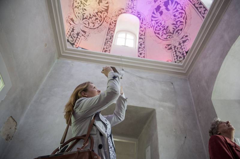 Efektownie prezentowały się także radziwiłłowskie sgraffita, umieszczone na sklepieniu wschodniej wieżyczki. Odpowiednio wyeksponowane dzięki oświetleniu robiły wielkie wrażenie na odwiedzających.