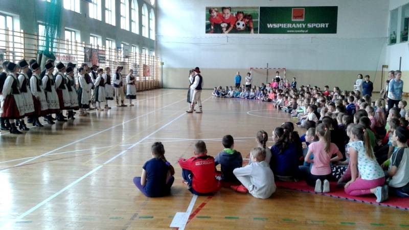 Wesołe przyśpiewki i skoczne tańce bardzo spodobały się uczniom najmłodszych klas. Atrakcją były też regionalne, barwne stroje ludowe, w których występowali tancerze. Oprócz fascynującego występu członkowie zespołu przygotowali także zabawy na ludowa nutę z młodą widownią. Dzieci przyjęły zaproszenie do wspólnej zabawy i radośnie pląsały ze studentami.