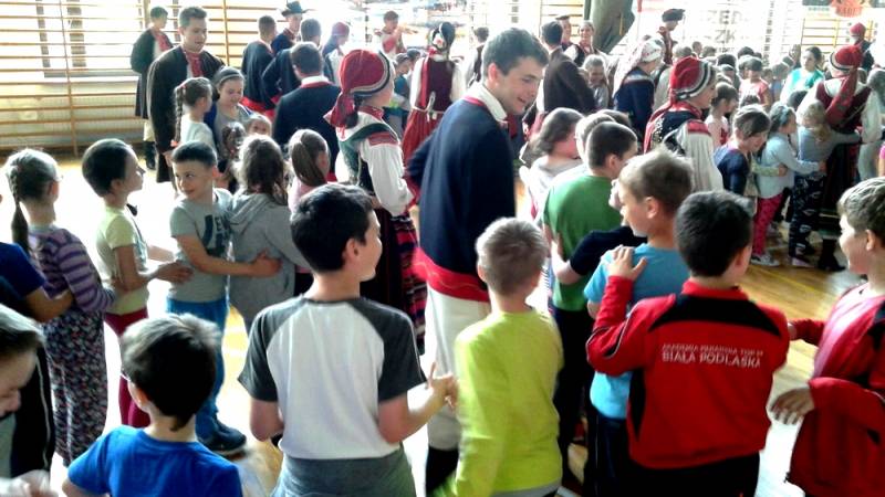 19 maja w Szkole Podstawowej nr 9 odbył się niecodzienny koncert. Najmłodszym uczniom zaprezentował się Zespół Pieśni i Tańca Podlasie w swoim najnowszym składzie, działający przy bialskiej AWF. Studenci pokazali układy taneczne rodem z Podlasia, Kurpi, Rzeszowszczyzny i Beskidu Żywieckiego. Spotkanie z folklorem wpisuje się w realizowany w szkole program edukacji regionalnej.