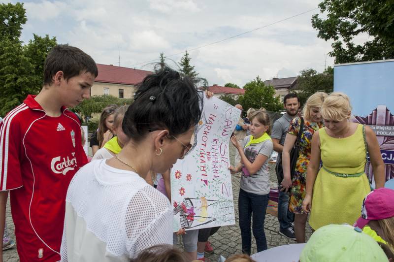 Młodzież która pojawiła się w centrum miasta mogła też sprawdzić jak wygląda świat oczami osoby pod wpływem alkoholu, dzięki przymierzeniu specjalnych alkogogli. Swój program przygotowali też organizatorzy Światowych Dni Młodzieży rejonu Biała Podlaska, prezentując hymn wydarzenia i symboliczną pantomimę.