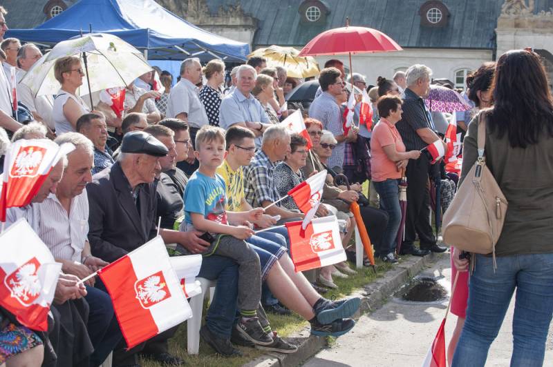 - Niektórzy mówią, że to Polska B. Nie! To jest właśnie Polska A, bo patrzą na mnie ludzie, których pradziadowie walczyli w powstaniu kościuszkowskim, listopadowym, styczniowym – mówił podczas spotkania przed Pałacem Potockich w Radzyniu Podlaskim prezydent Andrzej Duda. W wizycie wziął udział także prezydent Dariusz Stefaniuk, który wcześniej uczestniczył w uroczystościach w Pałacu Prezydenckim.