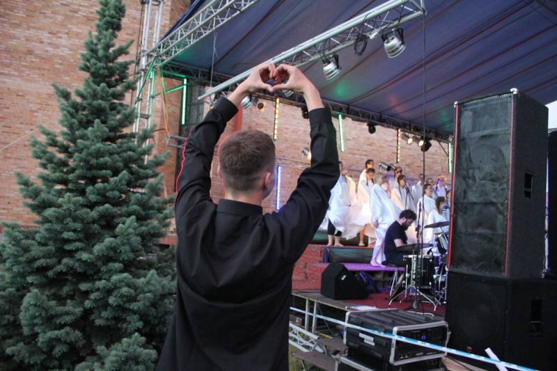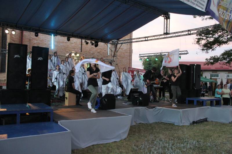 Atrakcje czekały na uczestników wydarzenia nie tylko w murach parafii. Przebojowo było również na scenie przed kościołem, gdzie odbył się koncert uwielbienia w wykonaniu grupy gospelowej Power of Heaven, złożonej z wolontariuszy całego rejonu. Na scenie zaprezentowało się 25 solistów w długich, satynowych szatach oraz instrumentaliści.