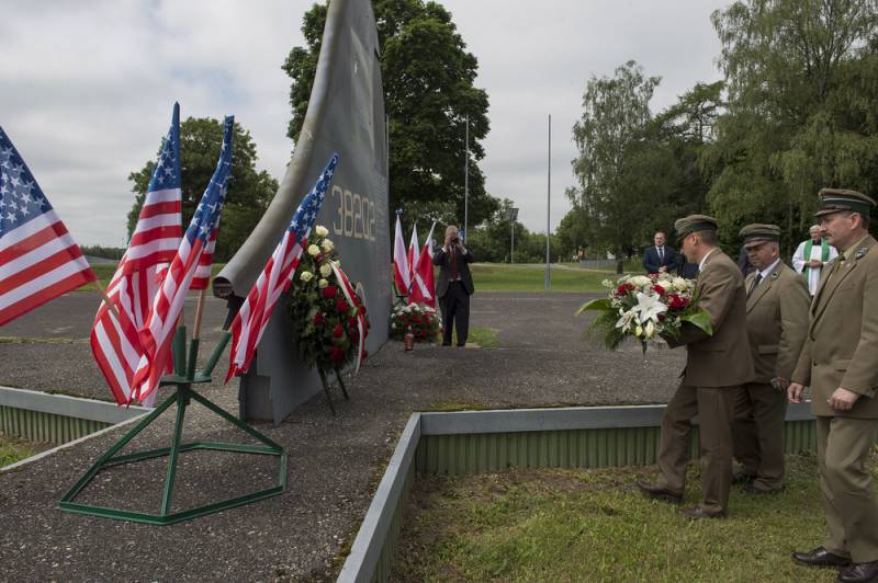Budowa postumentu została zainicjowana w jeszcze w 1997 roku, jako chęć oddania hołdu 41 802 poległym i zaginionym w Bitwie o Europę lotników Sił Powietrznych Stanów Zjednoczonych. Pomnik odsłonięty w 2000 roku przedstawia ogon samolotu B-17, zwanego Latającą Fortecą, który został zestrzelony w tym miejscu w 1944 roku. Pamiątkę tego wydarzenia obchodzimy właśnie 21 czerwca.