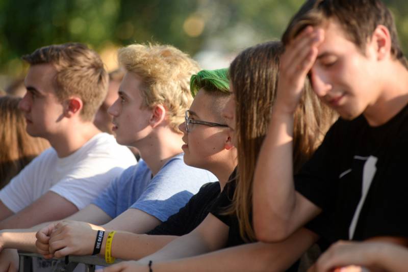 Potem na scenie pojawiła się grupa Mohipisian, która energetycznymi kawałkami przyciągnęła pod dużą scenę fanów głośnego grania. Jednak naprawdę gorąco zrobiło się dopiero w momencie pierwszych taktów, odegranych przez Happysad. Wokalista Kuba Kawalec wraz zresztą ekipy nie tylko świetnie zagrali ale również zapozowali do bialskiej ramki. Podobnie zresztą jak wszyscy bialczanie, którym bardzo przypadł do gustu ten pomysł.