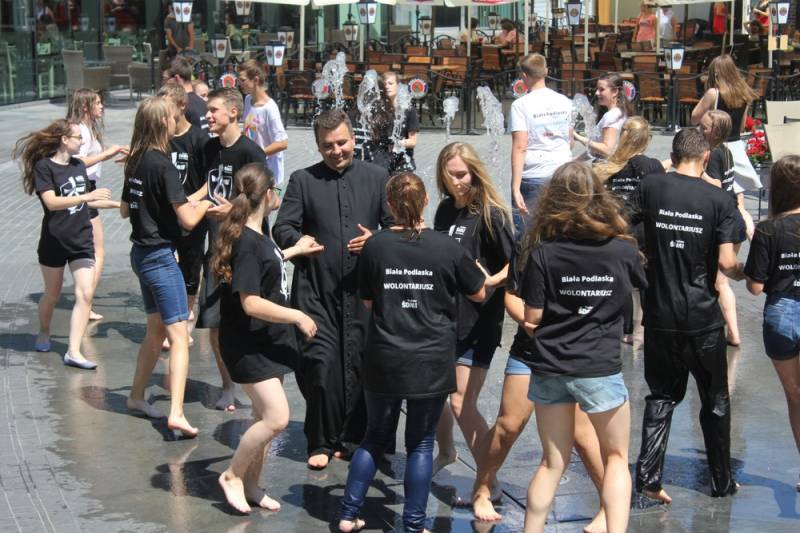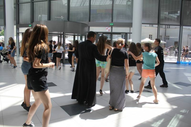 Do wspólnych tańców dołączali się nie tylko dzieci, rodzice, ale także pracownicy sklepów w galerii. W czasie ŚDM-owego rabanu widzowie otrzymywali Jerychońskie cukierki „krówki”, a także balony z siedleckim programem nadchodzących wydarzeń. Młodzież porwał szał Światowych Dni Młodzieży. Piękna pogoda wyciągnęła ich również przed Galerie Siedlce, gdzie w strumieniach orzeźwiającej fontanny kontynuowali raban. Końcowym punktem programu były wspólne lody oraz pizza i oczywiście… zakupy.