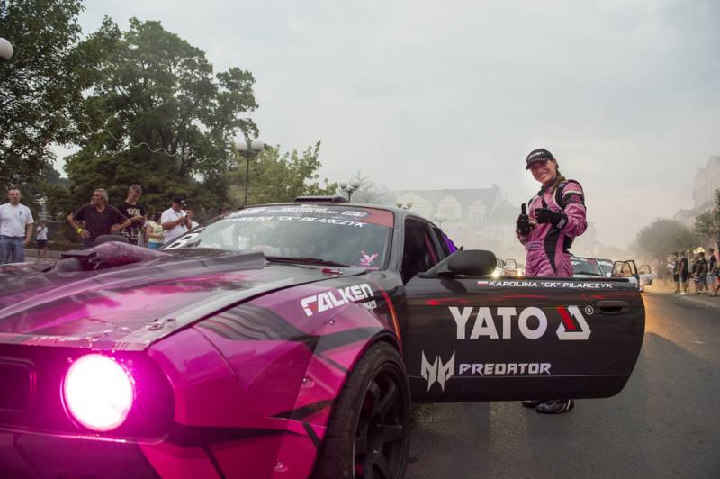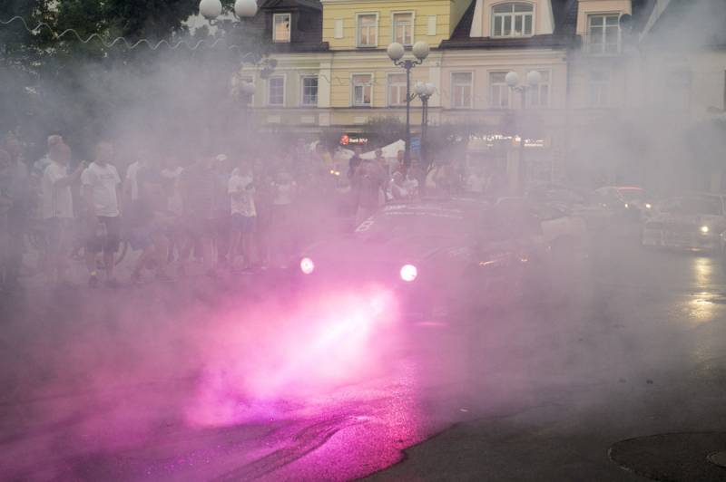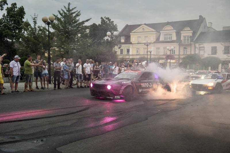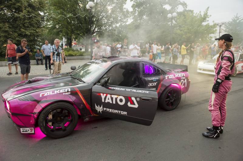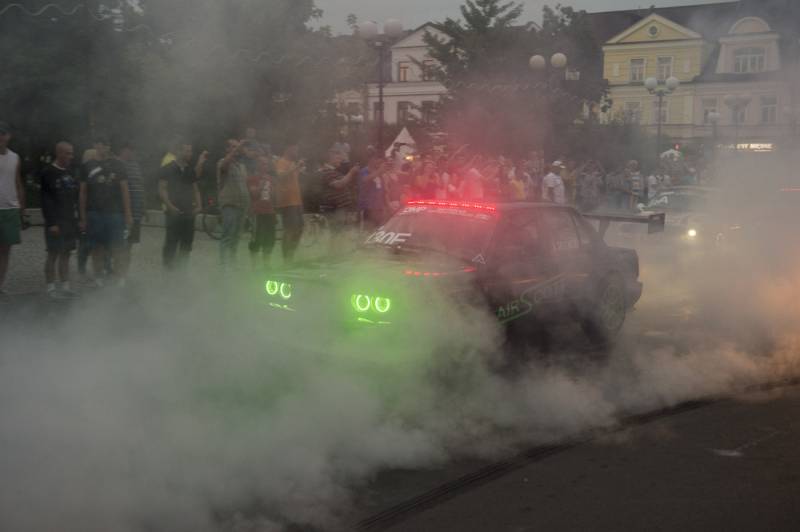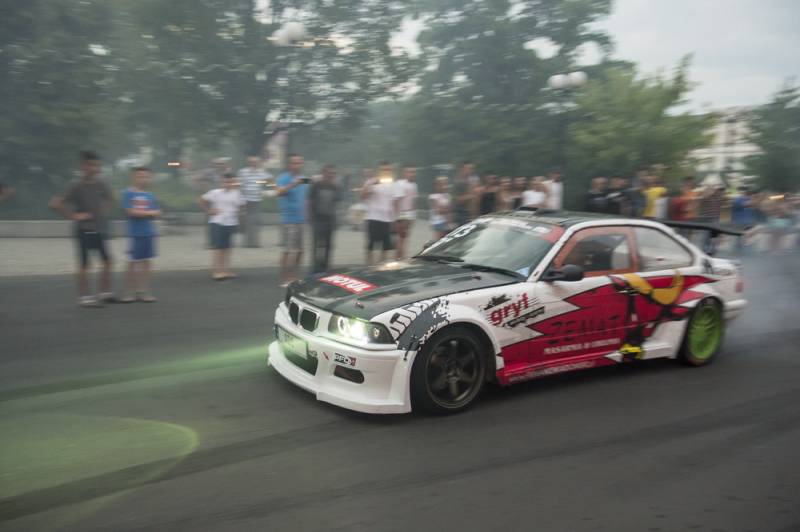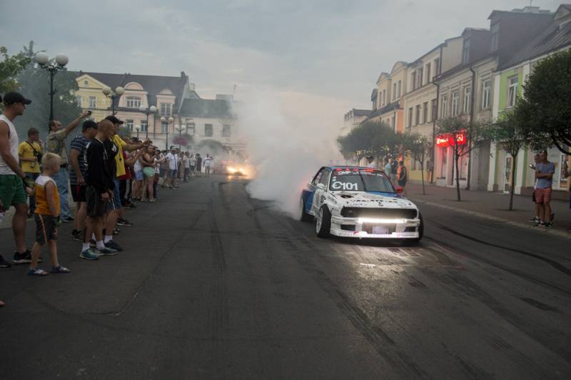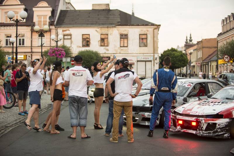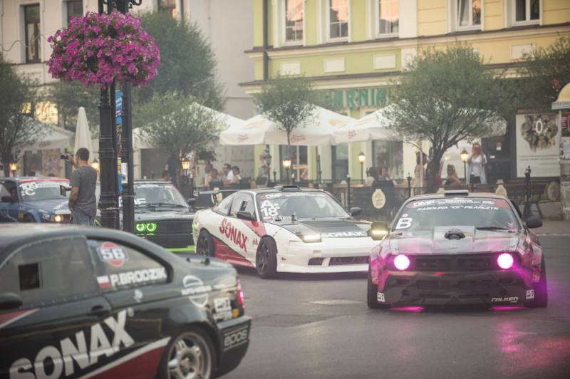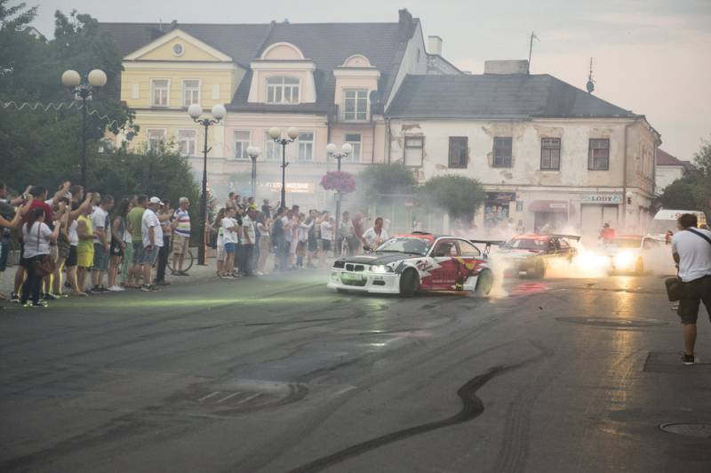 Bialczanie już po raz drugi mieli okazję oglądać zawodników nie tylko na torze, ale również w centrum miasta. Pojawili się na Placu Wolności i w jego obrębie, z wielkim rykiem silników, piskiem opon i tumanami dymu. Najbardziej efektownie zaprezentowała się królowa polskiego driftu Karolina Pilarczyk, która przyjechała do Białej oryginalnie podświetloną maszyną w swoim ulubionym kolorze.