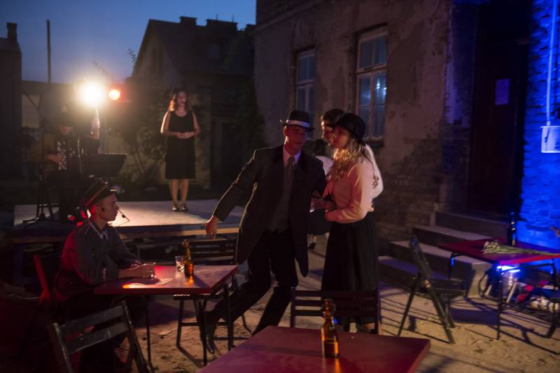 Reżyseria Jana Tuźnika wprowadza spektakl w przestrzeń miasta, wprost między przechodniów, w których niespodziewanie wciela się publiczność. Kolejne sceny rozgrywają się w różnych miejscach między dawną zabudową ulic Browarnej i Łaziennej. Klimat spektaklu podkreśla pojawiająca się w tle muzyka akordeonowa i pieśni z tamtych czasów oraz szyldy z dawnych lat, przygotowane przez Galerię Podlaską.