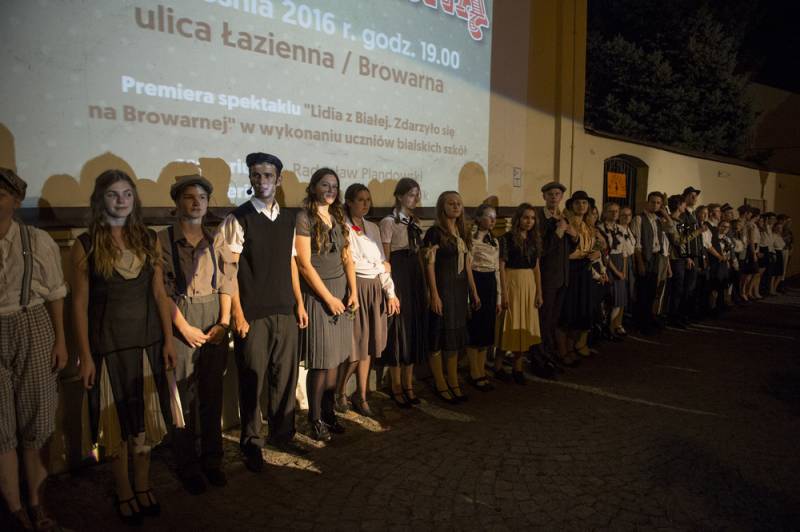 Uczniowie spotkali się także z seniorami, poznali losy społeczności bialskiej, a na podstawie nagranych wspomnień powstało widowisko teatralne, zaprezentowane przy Browarnej. W swoje role wcielili się sami uczestnicy projektu. Scenariusz przygotowany przez Radosława Plandowskiego opisuje historię Lidii i Johiego – przedstawicieli młodego pokolenia, z rozterkami i marzeniami tamtych czasów. W tle opowieści przewija się wątek wytwórni samolotów, fabryki Raabego i 34. pułku piechoty. To historia o magii miasta, które nie pozwala o sobie zapomnieć, którego ślady zostają w pamięci na całe życie.