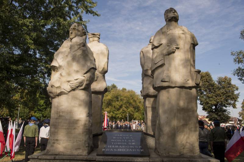 Powstaniec z okresu zaborów, żołnierz z 1939 roku, ksiądz prześladowany za wiarę oraz matka sybiraczka z dzieckiem na ręku – to przedstawiciele różnych stanów, których połączył jeden los. Zostali utrwaleni na pomniku, który powstał z inicjatywy Związku Sybiraków w 1995 roku.