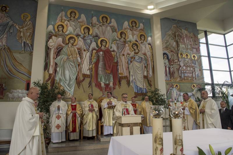 Mszy z homilią ks. dziekana Mariana Daniluka towarzyszyła obecność władz miasta, służb mundurowych, licznie zgromadzonych gości i mieszkańców. W swoim kazaniu proboszcz parafii NMP wskazywał na postać świętego patrona, która skłania do podejmowania wielkich wyzwań.