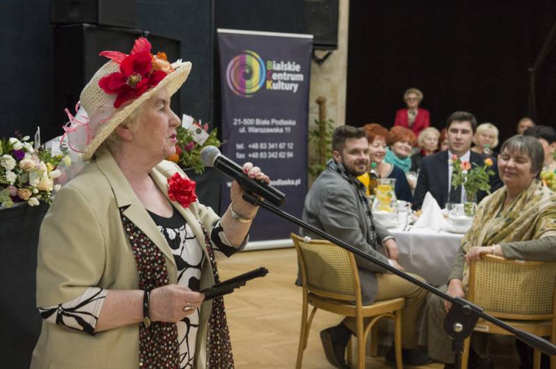 Bialski włodarz złożył specjalne podziękowania i przekazał wiązankę na ręce przewodniczącej bialskiego oddziału ZERiI Marii Skoniecznej. Na uczestników czekały nie tylko miłe słowa ale również wyborny poczęstunek i występy seniorskich grup artystycznych, działających w Białej Podlaskiej. Na scenie pojawił się m.in. chór Społem PSS, z akompaniamentem Andrzeja Charytoniuka. Tradycja działalności zespołu sięga lat 50. ubiegłego stulecia.