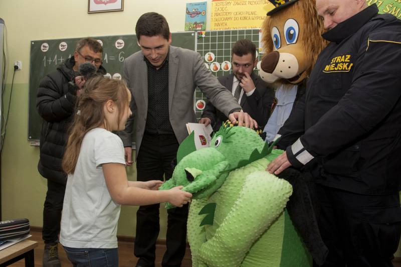 Zwyciężczyni nie kryła zaskoczenia i wzruszenia, gdy w drzwiach lekcyjnej klasy pojawiła się olbrzymia maskotka lwa Juliana oraz nieco mniejsza – zielonego smoka, który był jedną z nagród w konkursie, zorganizowanym przez bialską Straż Miejską. Z osobistymi gratulacjami pojawił się także zastępca komendanta funkcjonariuszy Artur Kozioł.