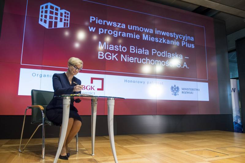 Z udziałem premiera Mateusza Morawieckiego odbyło się na warszawskiej Giełdzie Papierów Wartościowych uroczyste podpisanie pierwszej umowy inwestycyjnej w ramach rządowego programu Mieszkanie Plus. Podpis pod dokumentem złożyła m.in. Bernadeta Puczka, prezes bialskiego ZGL oraz Dariusz Stefaniuk, prezydent Białej Podlaskiej, która jako pierwsze miasto w Polsce wybuduje mieszkania czynszowe na preferencyjnych warunkach.