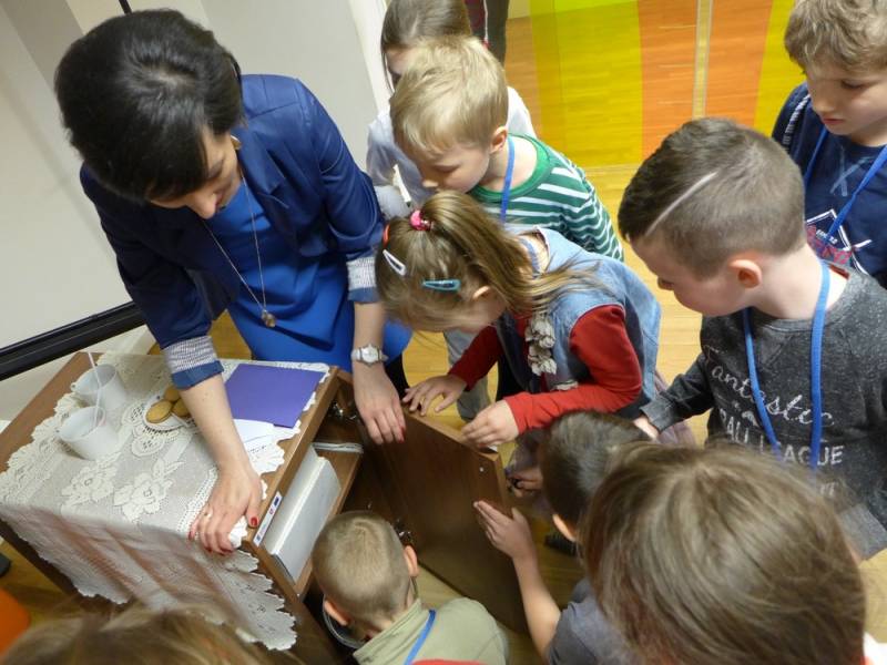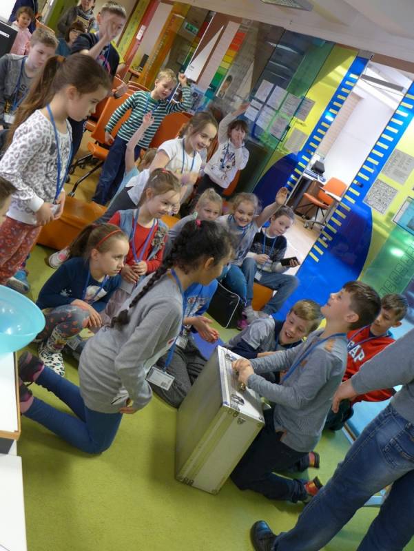 Aspirant w ciekawy sposób zaprezentował uczestnikom zawartość swojej tajemniczej walizki. Zarówno dzieci jak i dorośli dowiedzieli się w jaki sposób profesjonalnie zabezpieczane są ślady na miejscu zdarzenia, jaki specjalny strój nosi technik kryminalistyki oraz jak odpowiedzialną wykonuje pracę.
